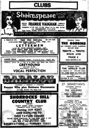 Dutch Eddies. 101 Club. Federal Club. The Bedford. Stanley House Social Club.