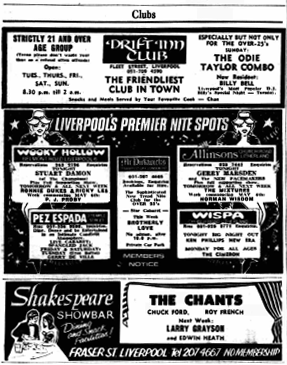 30 clubs, the list is by no means definitive, but goes a long way to showing how lively Liverpool 8 was at that time.